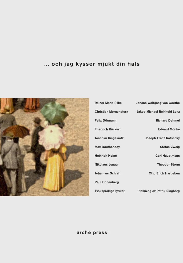 In 2020, Patrik Ringborg and Arche Press published an anthology of German poetry translated into Swedish called … och jag kysser mjukt din hals (… and I gently kiss your neck). The book can be ordered through the link above or bought in the store.